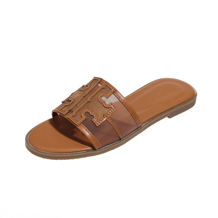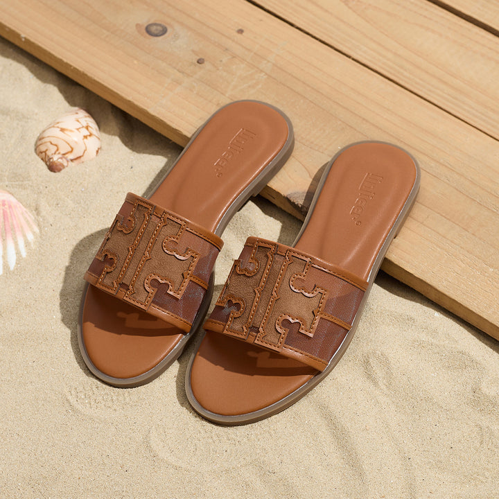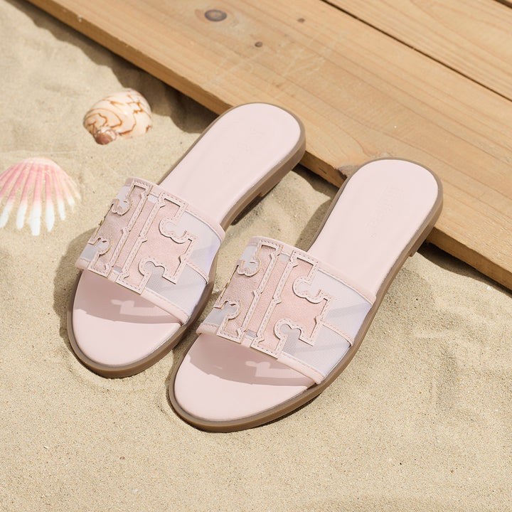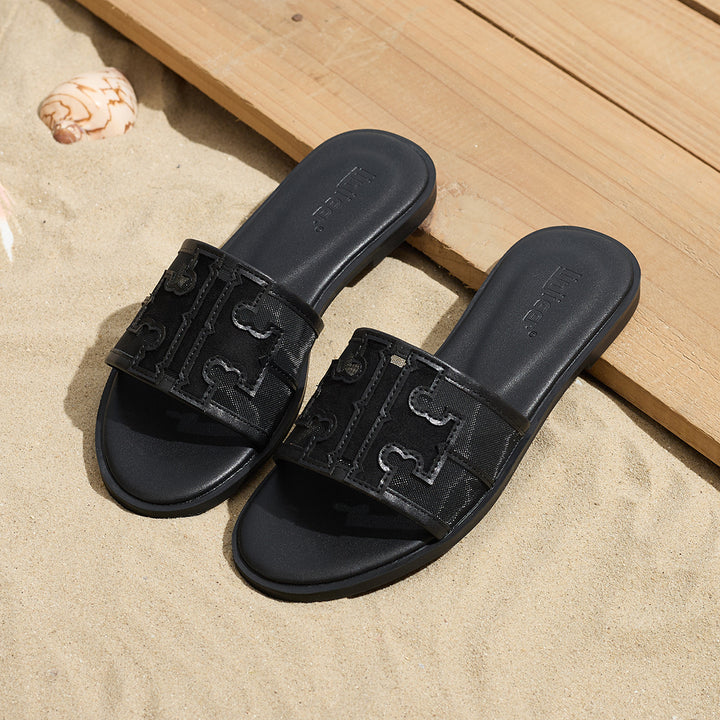 Women's summer new style sandals for celebrities and fairies, flat-soled beach travel, versatile embroidered letters, flip flops